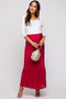 A solid pleated maxi skirt with an elastic waistband and ruffle hem.