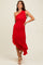 Red Ruched Mesh One Shoulder Asymmetric Dress