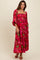 Red Satin Floral Smocked Ruffle Tier Maxi Dress