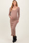 Red Scoop Neck Long Sleeve Maternity Midi Dress