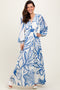 Red Striped Shoulder Tie Smocked Maternity Maxi Dress