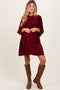 Red Waffle Knit Rounded Hem Maternity Sweater