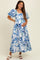 Royal Blue Print Puff Sleeve Square Neck Maternity Maxi Dress