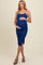 Royal Blue Rhinestone Sleeveless Ruched Mesh Maternity Midi Dress
