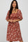 Rust Floral Square Neck Smocked Midi Dress