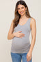 A solid rib knit maternity top featuring a scoop neckline and long sleeves.