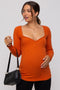 Rust Ribbed Sweetheart Neck Long Sleeve Top