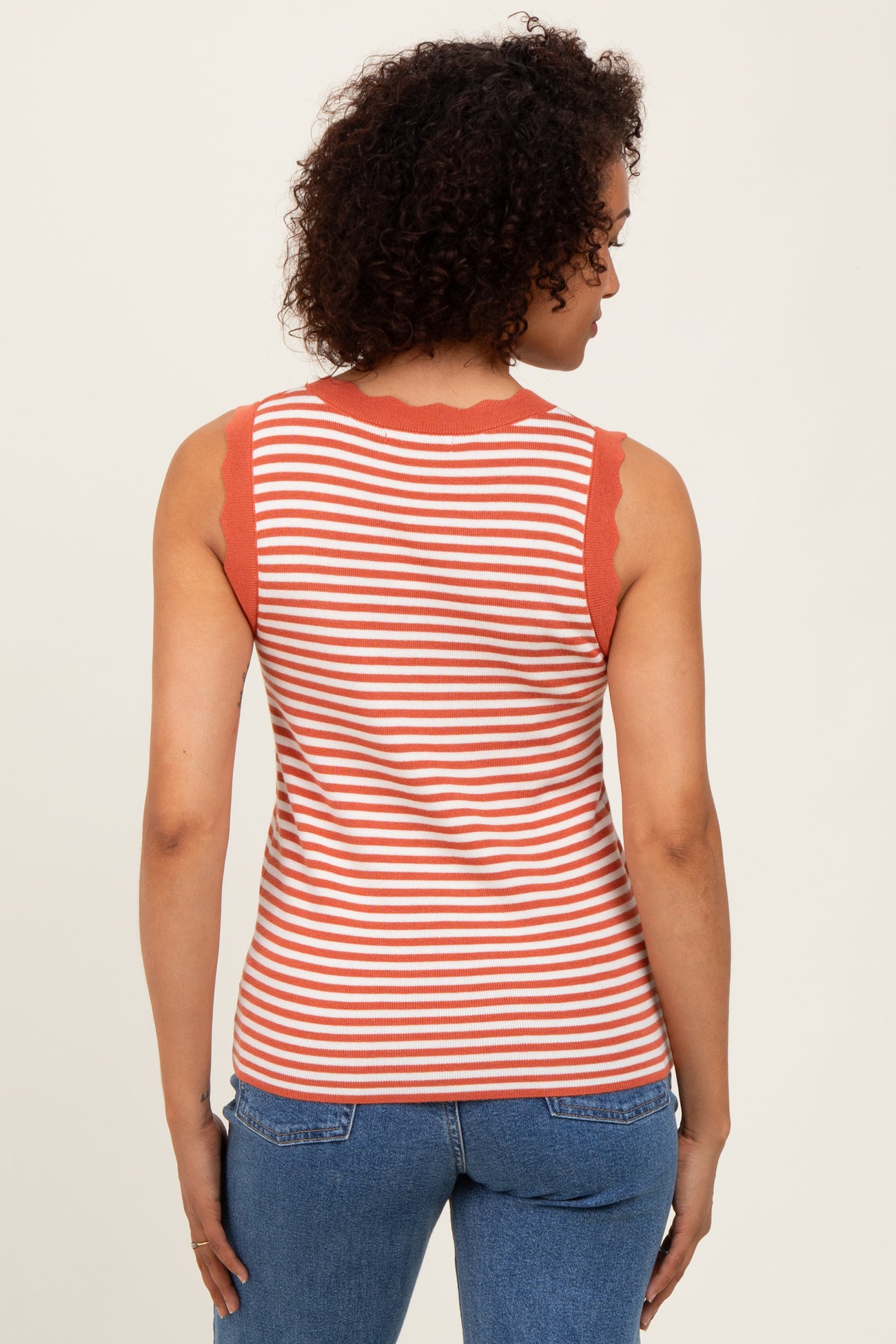 Rust Striped Knit Scallop Trim Sleeveless Top