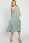 A lightweight gauze maternity midi featuring a sweetheart neckline, ruffle accent straps, a smocked back, and a gathered bottom tier. Bust is lined.
