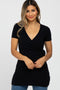 A solid hued maternity midi dress featuring a tiered body, ruffle sleeves, a rounded neckline and a back keyhole cutout with a button closure.