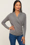 A floral print maternity long sleeve top featuring a v-neckline with button decor and rounded hemline.