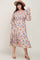 A multi-color floral plus midi dress featuring long sleeves, a smocked top, ruffle accents, a ruffle hem and side pockets.
