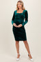 Taupe Shiny Velour Off Shoulder Maternity Midi Dress