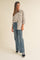 A striped top featuring a collared neckline, a button up front, long sleeves and a rounded hem.