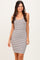 A rib knit, striped dress with a scoop neckline and a racerback.