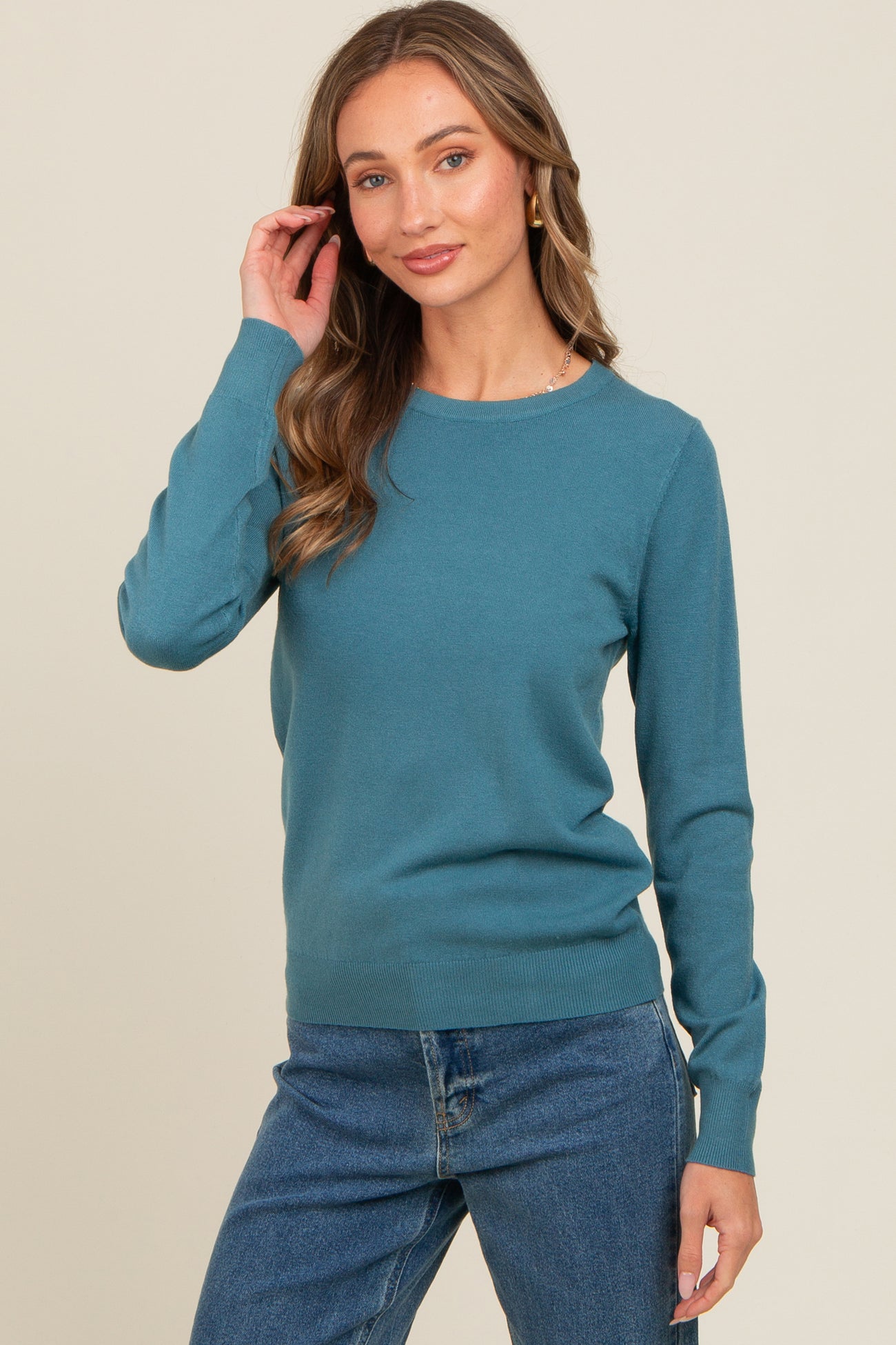 Teal Basic Soft Knit Sweater