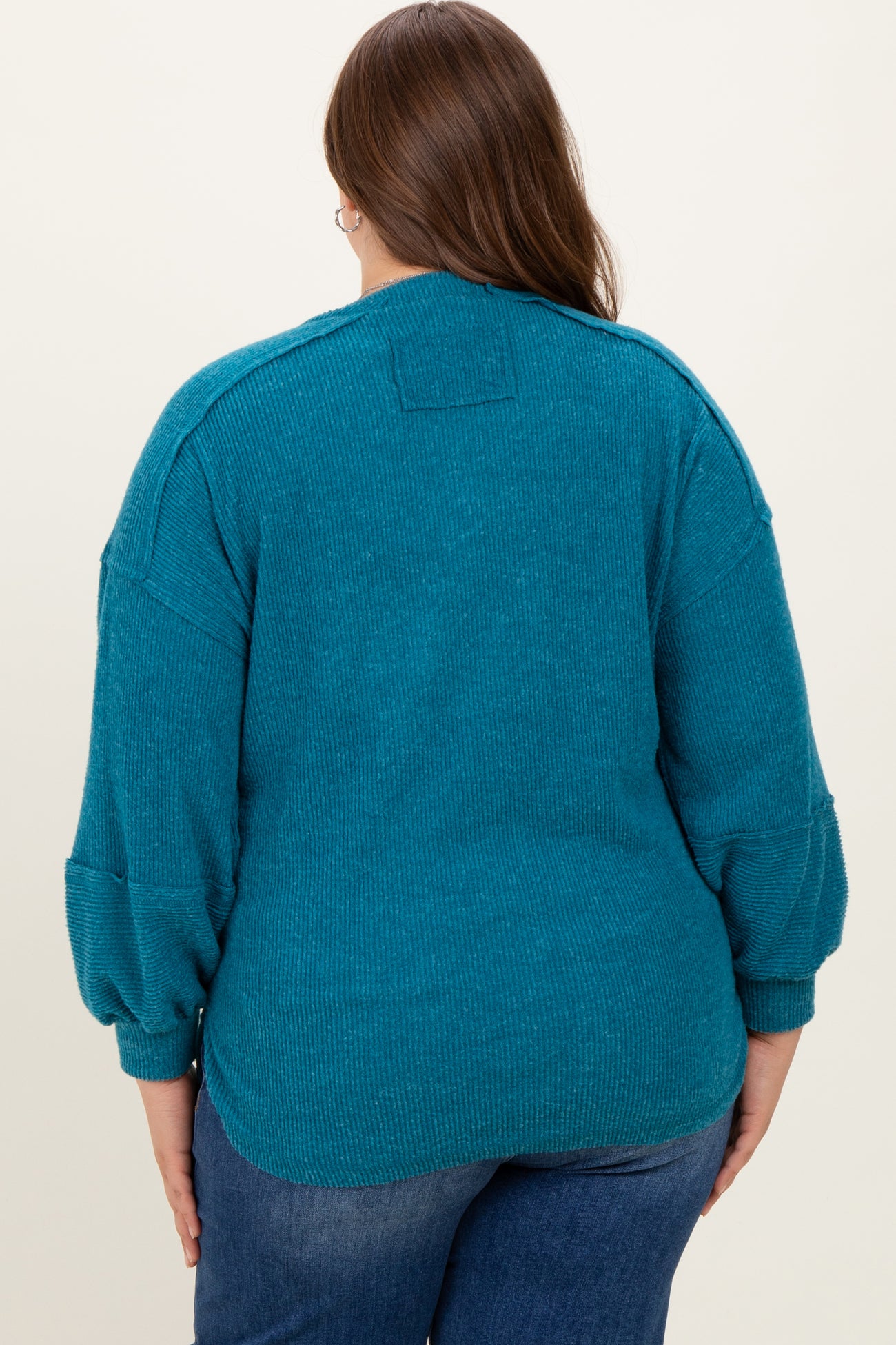 Teal Oversized Ribbed Knit Henley Maternity Plus Sweater