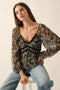 A mesh off shoulder maternity midi dress featuring mesh sleeves, and a ruched body.
