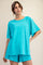 Turquoise Oversized Raw Hem Short Sleeve Tee