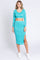 Turquoise Ribbed Long Sleeve Crop Top Skirt Set