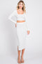 Details A solid ribbed long sleeve crop top midi skirt set. Skirt has one side slit. Content + Care