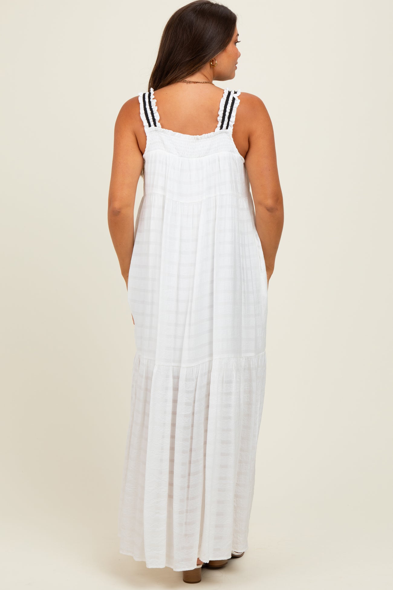 White Bow Tie Accent Tiered Maternity Maxi Dress