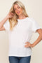 A basic solid maternity short sleeve tee with raw hem details and a round neckline.