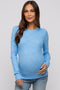 A striped maternity button down blouse with a collared neckline, front chest pocket and puffed long sleeves.