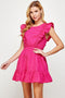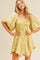 Yellow Metallic Bubble Sleeve Flared Mini Dress