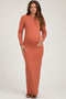 A multi-color striped ribbed maternity dress featuring adjustable self-tie ruching and a rounded neckline.