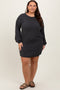 Charcoal Rib Knit Long Sleeve Maternity Plus Dress