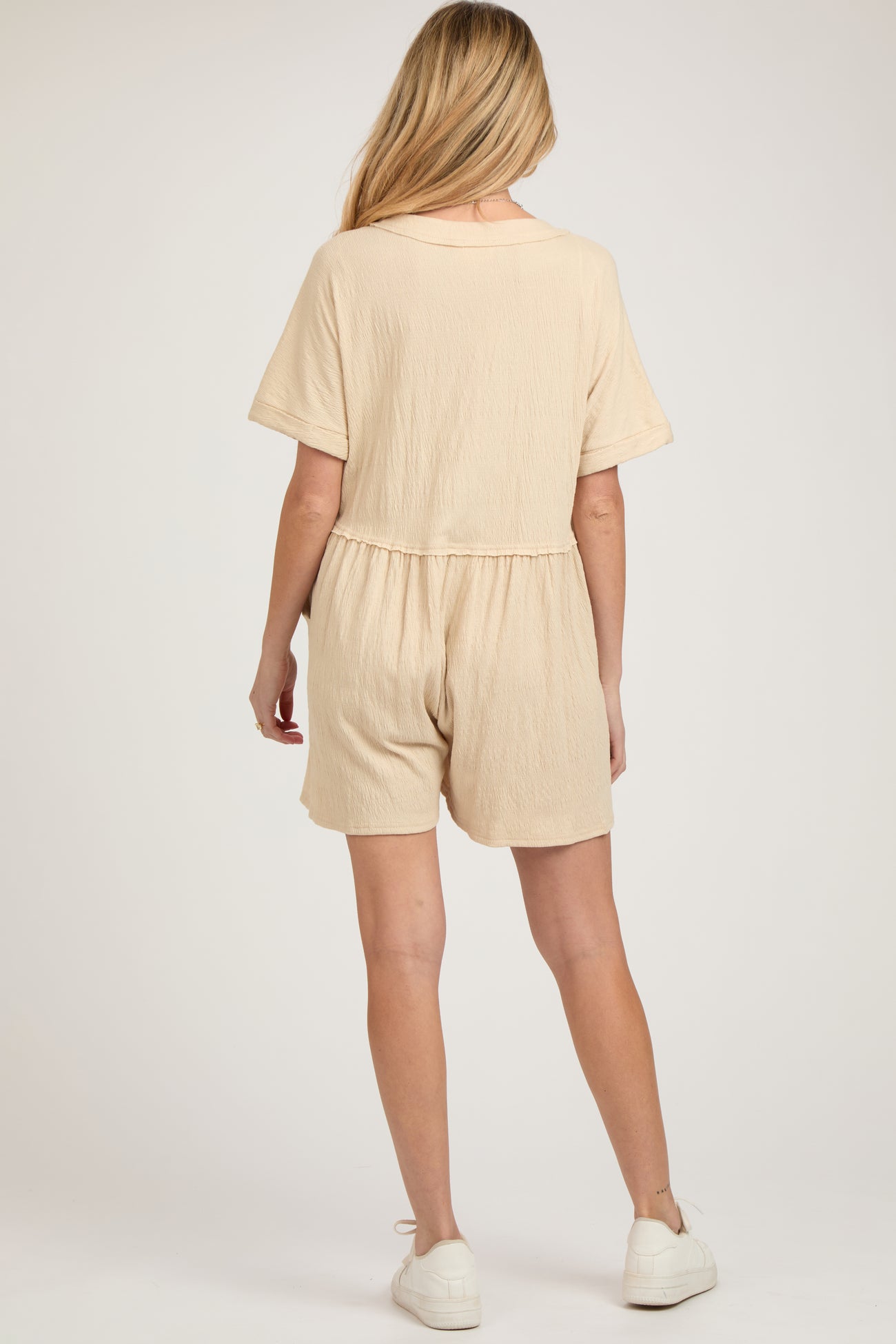 Beige Button Down Maternity Romper