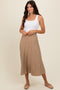 Beige Contrast Smocked Balloon Sleeve Midi Dress