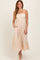 Beige Floral Embroidery Back Ribbon Midi Dress