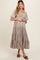 Beige Floral Ruched Strappy V-Neck Front Puff Short Sleeve Maternity Midi Dress