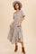 Beige Floral Ruched Strappy V-Neck Front Puff Short Sleeve Midi Dress