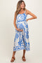 Beige Floral Smocked Maternity Midi Dress