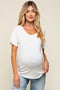 A maternity set with a crop top and wide leg pants. The smocked crop top features an adjustable front tie, and the pants have an elastic waistband and side pockets.