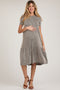 Beige Linen Short Sleeve Tiered Back Tie Maternity Midi Dress