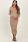 Beige Ribbed Crossover Off Shoulder Maternity Midi Dress