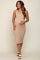 Details A solid sleeveless fitted maternity midi dress. Content + Care