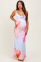 Beige Ribbed Knit Embroidered Maternity Midi Dress