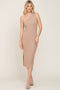 Beige Ribbed Knit Side Slit Midi Dress