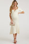 Beige Ribbed Side Slit Sleeveless Maternity Midi Dress