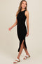 Beige Ribbed Side Slit Sleeveless Midi Dress
