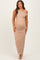 Beige Ruched Asymmetrical Off Shoulder Maternity Maxi Dress