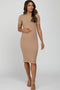 Beige Ruched Front Cutout Back Tiered Maternity Maxi Dress