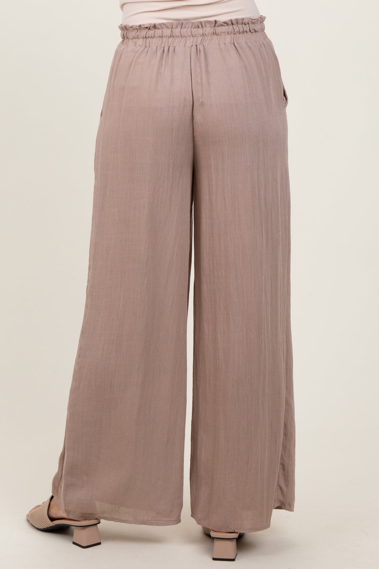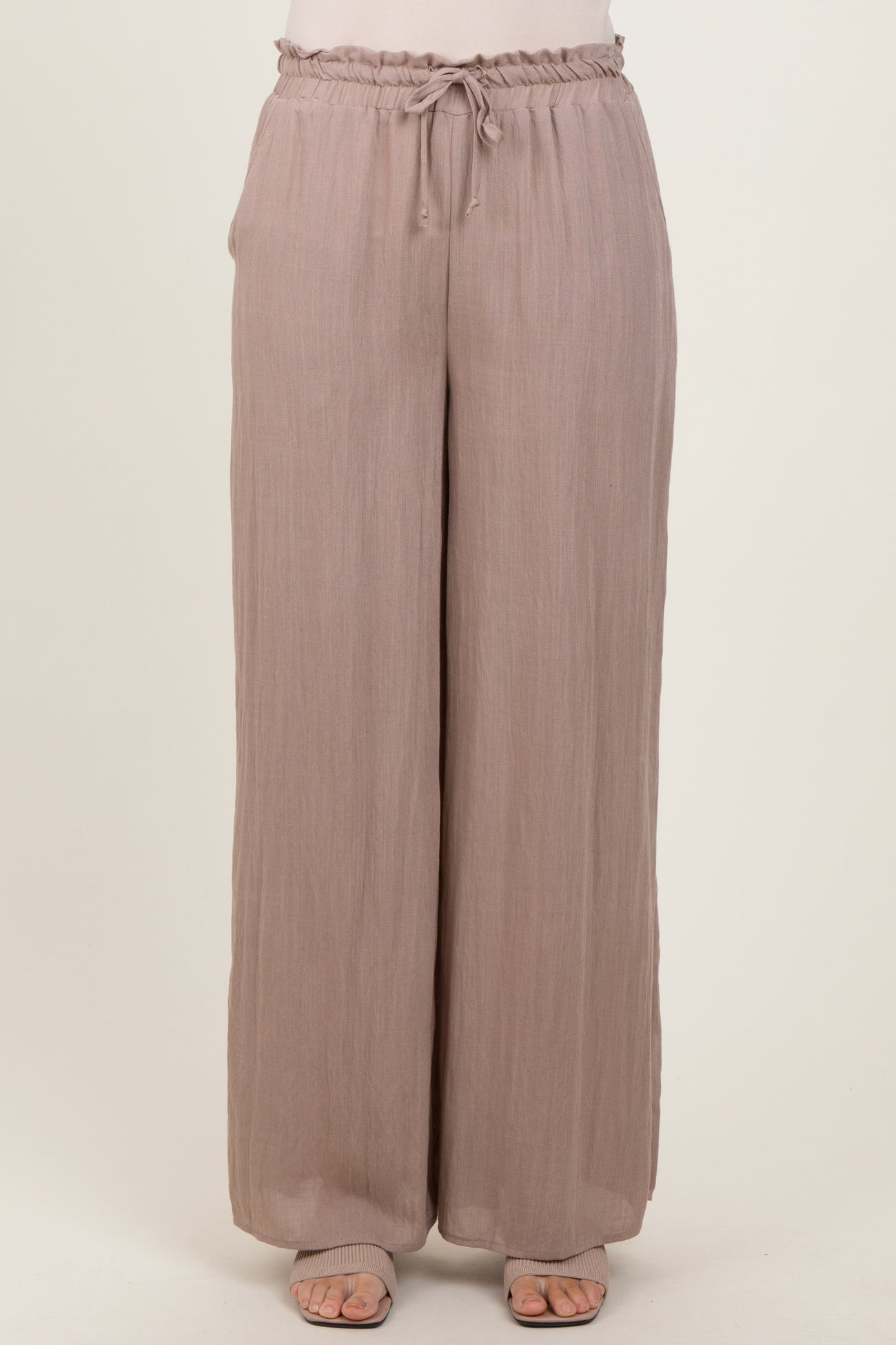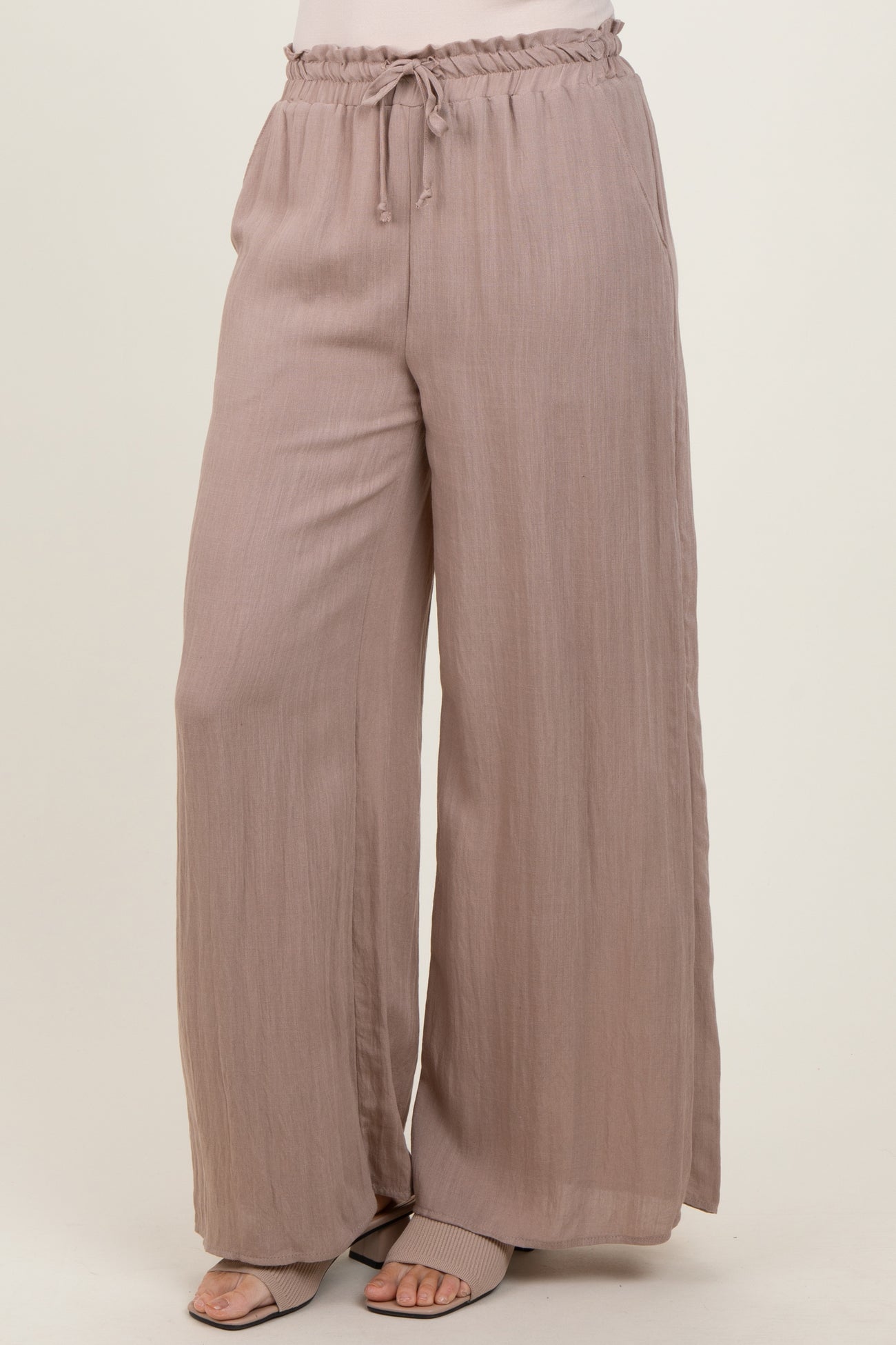Beige Ruffled Drawstring Waist Wide Leg Pants