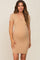 Beige Split Neck Ribbed Fitted Maternity Dress