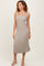 A rib sweater knit midi dress featuring a squared neckline and an a-line skirt.